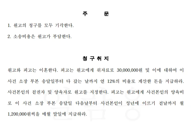 1심에서 기각되었던 이혼 청구